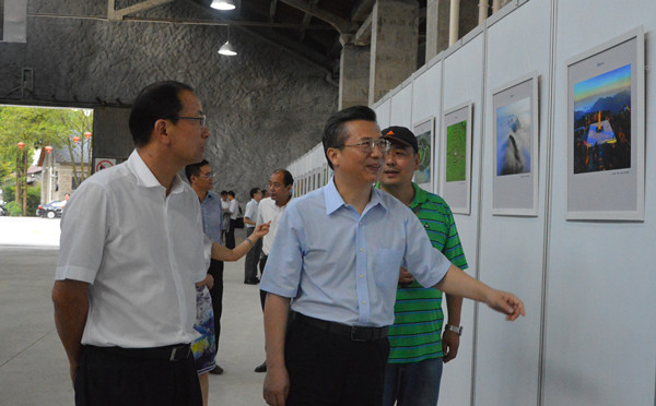 考察中,王永康實地參觀走訪了幸福谷品牌管理公司、創(chuàng)客空間等入園企業(yè),并饒有興趣的觀看了正在文創(chuàng)園8號樓舉辦的“‘2016?航拍麗水’百幅攝影作品展”。看到一幅幅既熟悉又倍感新鮮的攝影作品,王永康異常高興,還不時的和市委書記史濟錫進行交流。