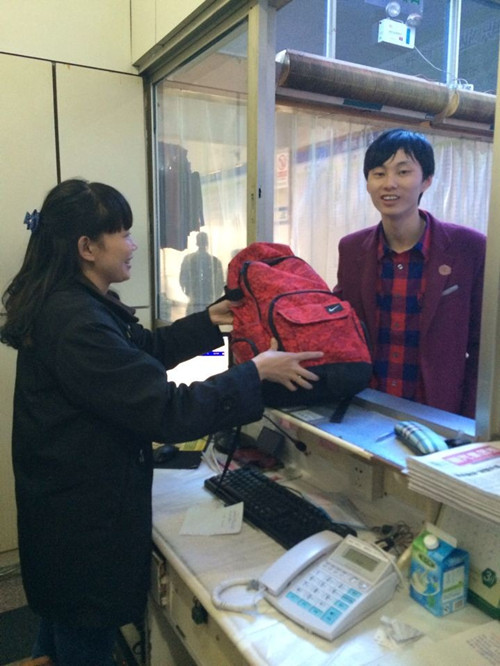 “您好,這里是客運(yùn)東站服務(wù)處,您落在車上的背包我們已經(jīng)幫您找到了,請(qǐng)您有空的時(shí)候過來取?!狈?wù) 組組員李一斌平靜中帶點(diǎn)興奮地說。