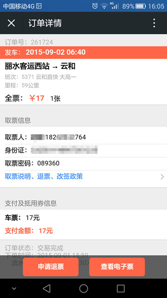 (6)微信還可以退票(手續(xù)費(fèi)與窗口退票相同)