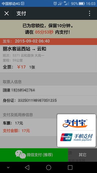 (5)旅客購票后最遲發(fā)車前10分鐘憑身份證或取票密碼到自助售票機(jī)取票。