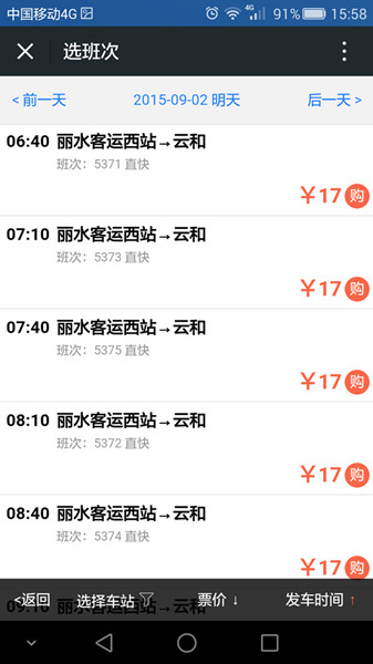 (3)點(diǎn)擊“購票”,進(jìn)入購買服務(wù)頁面,在上車站位置選擇“麗水客運(yùn)東站”或“麗水客運(yùn)西站”。